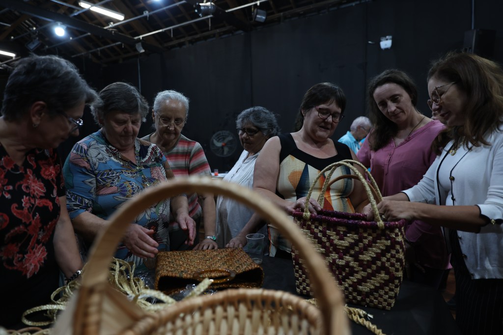 Na fase de oficinas, realizadas em cinco cidades do Estado: Caxias do Sul, Três Coroas, Canguçu, Viamão e São Leopoldo, 73 artesãs puderam participar de encontros presenciais e mentorias on-line para aperfeiçoamento dos produtos que já desenvolviam em fibras vegetais.